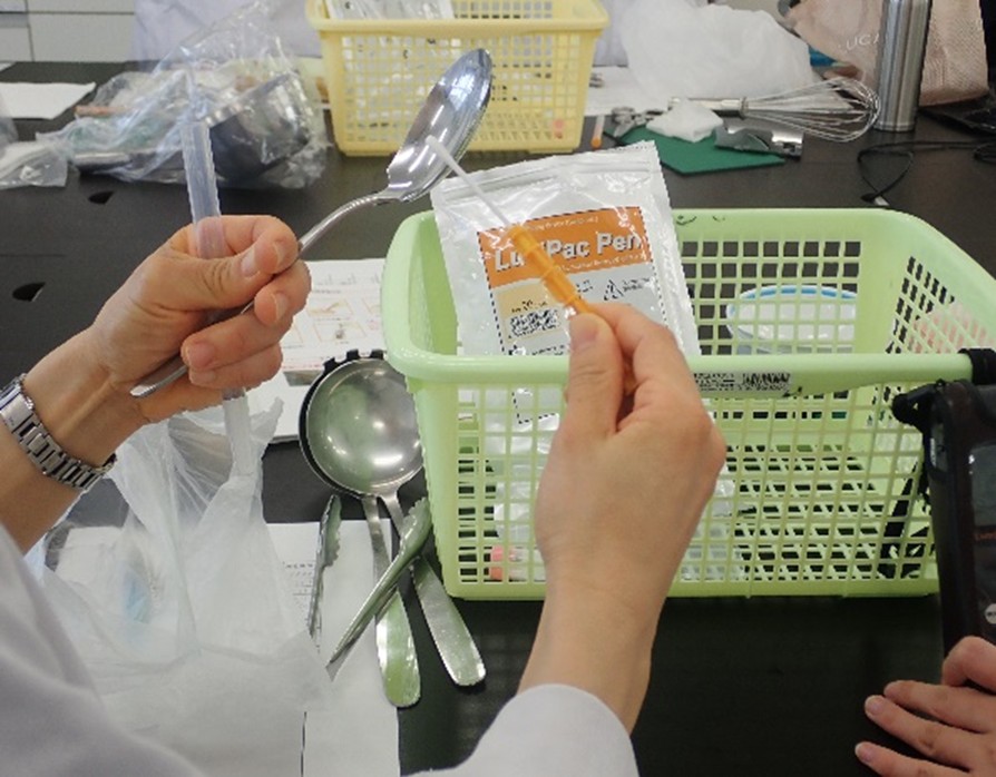 - ATP検査は実際にやってみて、この器具のこんな部分に気を付けるようにしよう、拭き取るだけでも数値がこんなにも変わる、ということがわかり、これから意識していきたいと思いました。