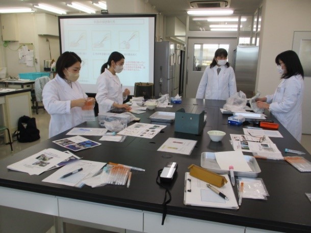 令和5年1月6日、愛知県学校給食総合センター(豊明市)にて、県内の栄養教諭・学校栄養職員を対象に、「食品検査技術講習会」を開催しました。この講習会は、食品衛生の知識及び調理現場で活用できる検査技術を習得することを目的に毎年開催しており、今年度は12名の方々にご参加いただきました。