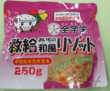 学校給食の活用では「防災訓練の日」に教育の一環として災害食として提供したり、予期せぬ台風等で給食が実施できない場合に活躍しています。